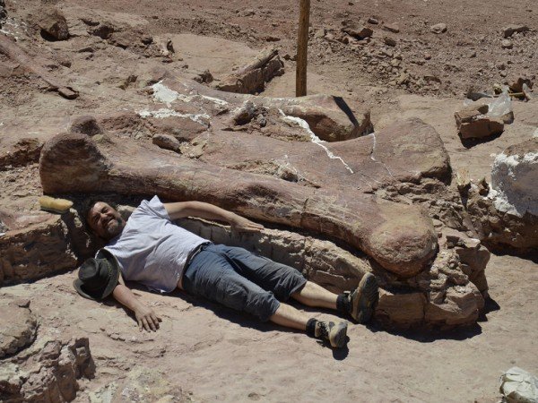 从阿根廷沙漠里出土这些骨架的古生物学家们从周围岩石上可以看出,这只食草动物生活在9500万至1亿年前,但是就科学上的刺激来说,Norell说:“大小很重要。”这个新恐龙才刚被发现,甚至还没有一个正式名字,当一月份它被安装好时,甚至会比博物馆其它的巨型标志物更大,比如94英尺长的蓝鲸、39英尺长的霸王龙、和63英尺长的大独木舟。