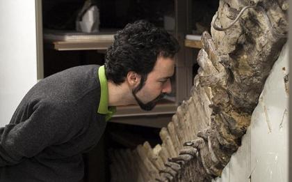 如图所示,塞尔吉奥-贝尔塔佐(Sergio Bertazzo)博士和同事发现恐龙骨骼化石上的软组织,之前该恐龙骨骼化石已在伦敦自然历史博物馆存放了100年。