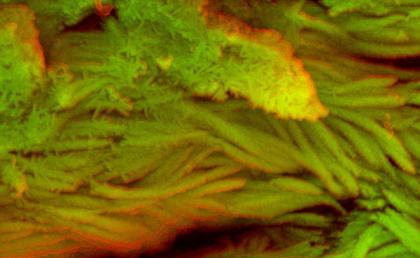 目前,英国科学家发现储存在伦敦自然历史博物馆内100年之久的恐龙骨骼中竟然有类似红血细胞的软组织,他们使用扫描电子显微镜对7500万年前恐龙骨骼化石研究分析,结果显示骨骼上存在着红血细胞和胶原纤维(图中所示)。