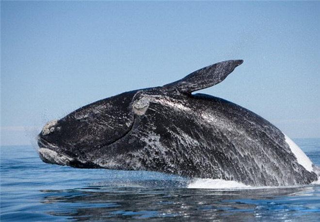 南方露脊鲸是须鲸物种之一,它们主要以过滤水中浮游生物为食,通常情况下,它们的身体呈黑灰色或者黑色皮肤。