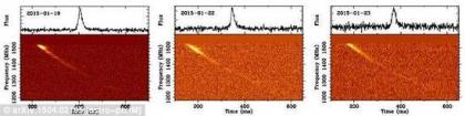 快速无线电爆发的持续时间只有短短数毫秒。2007年,帕克斯射电望远镜第一次探测到快速无线电爆发。当时,天文学家将帕克斯望远镜获取的数据结合在一起进行分析,排除不相干的事物后得出了这一发现。在此之后,帕克斯望远镜又发现6次出现在银河系外的快速无线电爆发。2012年4月,波多黎各的一架巨型射电望远镜探测第7次快速无线电爆发。天文学家表示这一次的信号真实存在,并非仪器故障或者厨房电器所致。