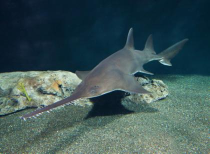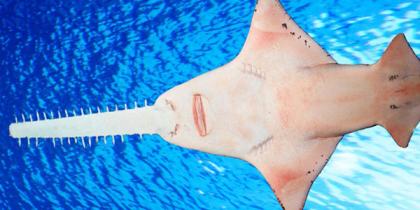 栉齿锯鳐看起来就像是长着链锯的鲨鱼,但它们其实属于鳐总目。栉齿锯鳐的体型很大,可以长到7.6米。它们在热带和亚热带大西洋曾经数量丰富,但如今已经成为极危状态。