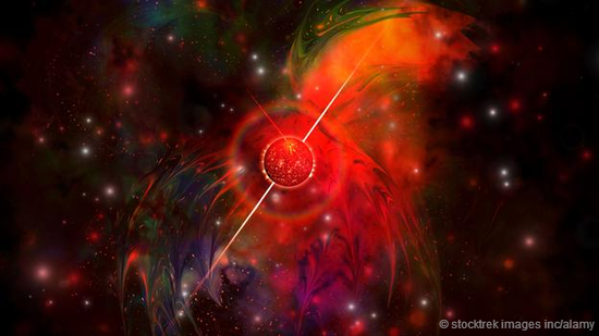 即便是最普通的脉冲星也非常不可思议。它们是宇宙中密度最高的天体之一,它们是质量约为太阳8~20倍之间的大质量恒星爆发衰亡之后留下的遗骸。当这样的大型恒星耗尽它最后的燃料并逐渐走向死亡之时,将会以超新星的方式发生猛烈爆发,在此过程中将其外层气体壳完全剥离。