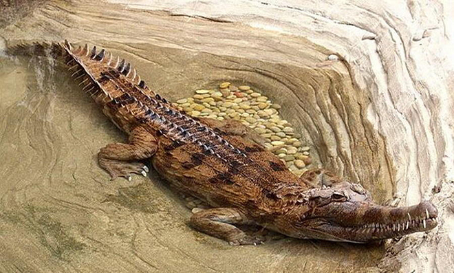 恒河鳄:恒河鳄体重大约250公斤,体长接近4.5米,有时也被称为“食鱼鳄鱼”。