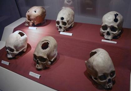 珍宝展”的展览,秘鲁政府提供了248件印加时代的珍文物,其中包括一只印加女性的头骨(没有领骨),它出土于印加文明的中心马丘比丘,是这场展览中最引人注目的文物。在这个头骨上,有五个穿孔。秘鲁专家介绍,那是进行过5次环切手术的痕迹。