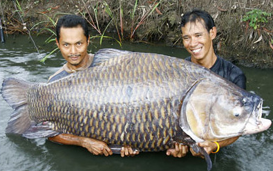 泰国的一位钓鱼爱好者在泰国Bung Sam Lan河水中钓到了一条重达120公斤的鲤鱼。