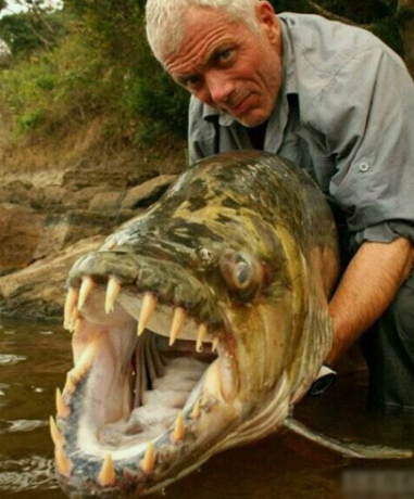 英国垂钓士捕获世界上最大的食人鱼。食人鱼有1.5米长,重45公斤。