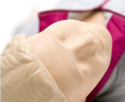 这个假人会不会做得太真了,这样我不敢帮她人工呼吸啦(汗),现代的示范用急救假人就比较没那么仿真,换句话说就是比较不让人发毛啦,像下图这一款,同样是用这女孩的脸,所以到了现代还是继续沿用下去。