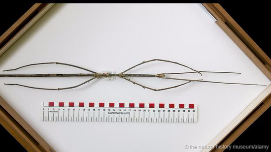 大多数昆虫的体型都不会超过你的手掌大小,但还是有一些例外。世界上最长的昆虫是婆罗洲的一种竹节虫——陈氏竹节虫(Phobaeticus chani),以其发现者命名。目前发现的最大个体长度为0.5米(腿伸展开之后),保存在英国伦敦的自然历史博物馆。