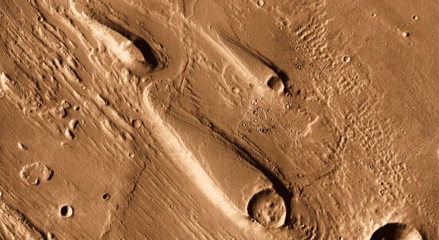 火星阿瑞斯谷附近,早期洪水冲蚀留下的岛屿痕迹,火星奥德赛探测器拍摄。