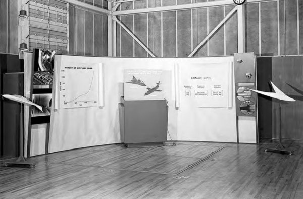 1958年的三年一次视察中Jim Modarelli在Ames统一规划风洞看到的超音速空气动力展示。图片右侧一个扭曲反挠超音速机翼构型大型模型给Modarelli留下深刻印象。