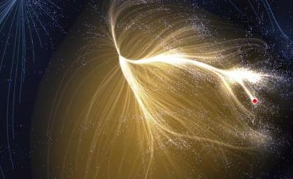 红点标注的就是我们的银河系,它位于一个名为Laniakea的超星系团中,Laniakea有着“无边的天堂”的意思。