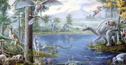 科学家在挪威斯瓦尔巴特群岛发现远古森林化石,这是艺术家绘制的远古树木生长情况。