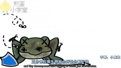 生物死后躯体的自我防御解除,五分钟后微生物就开始分解尸体了。为了不让大型动物跟它们抢吃的,微生物会释放毒素,这些毒素