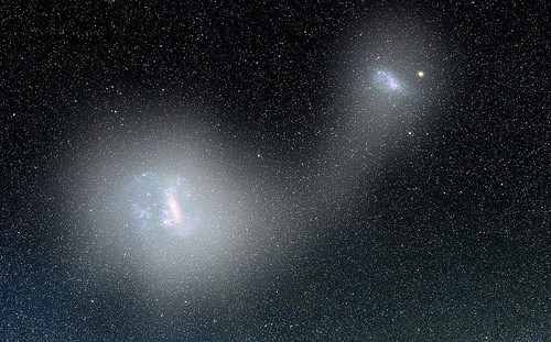 天文学家们所组成的一个国际团队发现,在银河系旁边两个最大的矮星系,大小麦哲伦星云,似乎