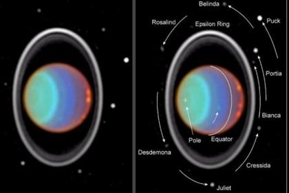 天王星庞大的卫星群几乎都由冰物质构成,当然还有氨和二氧化碳,碳质材料构成岩石
