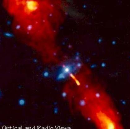 图中显示的中央蓝色天体为活动星系核,其能量来自背后的黑洞