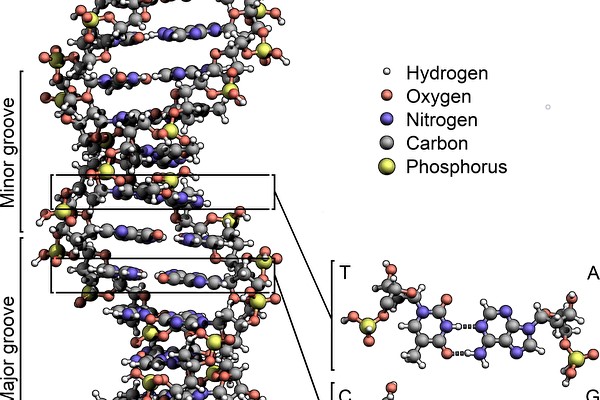 DNA双螺旋分子结构图。(公有领域/Zephyris)