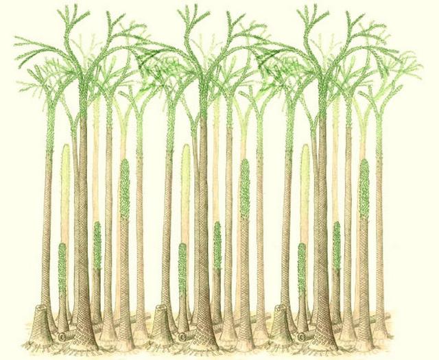 科学家在挪威斯瓦尔巴特群岛发现远古森林化石,这是艺术家绘制的远古树木生长情况。