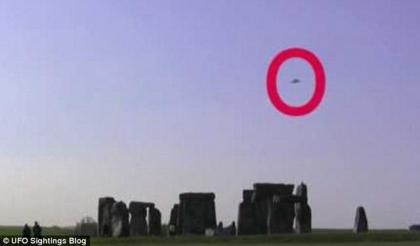 如图所示,这是在史前巨石柱上空拍摄到的神秘飞行物,颜色呈黑色,外型颇似飞碟。然而专家指出,这可能仅是飞鸟而已