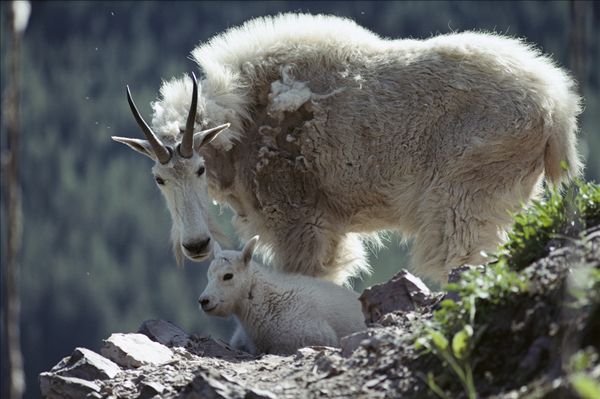 雪羊能爬上大多数动物都无法到达的悬崖峭壁,它们依靠颈部和肩部的大块肌肉群做到这种壮举 雪羊(Oreamnos amer