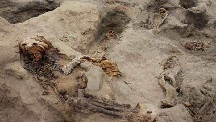 秘鲁考古学家在北部滨海观光城镇万查科(Huanchaco)发现一座大型的奇穆王国(Chimu)古坟场,陆续挖出多达