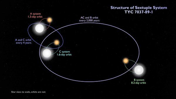 美国宇航局(NASA)的凌日系外行星巡天卫星(TESS)发现一个罕见的六星系统,里面的恒星亮度忽明忽暗,引起研究人