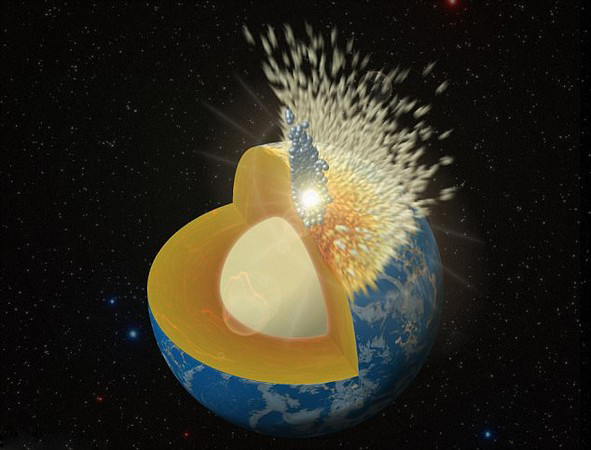 科学家描绘的:地球遭遇一颗如火星大小的星体撞击的画面