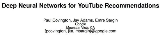 本论文根据典型的两阶段信息检索的二分法(two-stage information retrieval dichotomy)分为两部分:首先,我们详细描述了一种深度候选生成模型(deep candidate generation model),接着描述了一种分离的深度排名模型(deep ranking model)。通过设计、迭代、维护一个带有巨量面向用户的影响的巨型推荐系统,我们还提供了实用的经验教训和见解。