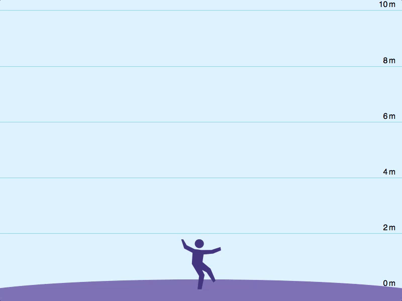 如果你从这边用力起跳,那么你会直接飞到外太空,简单来说,就是你跳起来的速度已经超越了该颗星球的重力束缚,已达逃逸速度之上;如此一来就像动画《一拳超人》,能像琦玉能从地表跳到其他星球一样(当然速度还是是差很多的)。