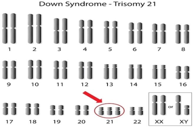 正常人体内每条染色体有两份拷贝,唐氏症患者的第21条染色体多出一份拷贝,科学家把这叫做21-三体症(Trisomy 21),认为这是导致唐氏症患者一系列认知障碍的原因。