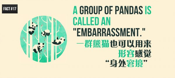17.“一群熊猫”可以用来形容感觉“身处窘境”。