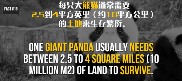 13.大熊猫在地球上已经存在了2到3百万年。(跟剑齿虎差不多一个时期。)