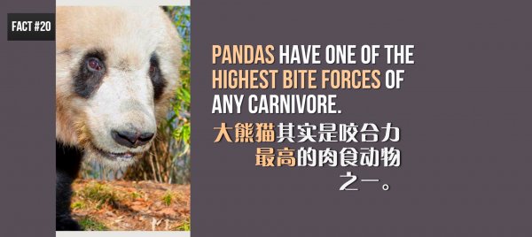 20.熊猫其实是咬合力最高的肉食性动物之一。(卖萌不止,生命不息)