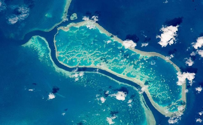 国际空间站一位宇航员拍摄到澳大利亚大堡礁,近期大规模白化现象导致大堡礁北部和中部35%珊瑚死亡。