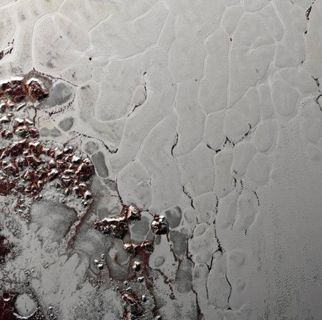 美国宇航局“新视野号”探测器拍摄到斯普特尼克高原,这是冥王星表面氮冰构成的心形平原,最新研究显示该平原通过表面之下对流作用而不断地改变外形,这类似于渗出的“熔岩灯”。