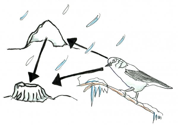 她确信星鸦记得它们在夏天或秋天看到的标记,并利用这些标记来找种子。