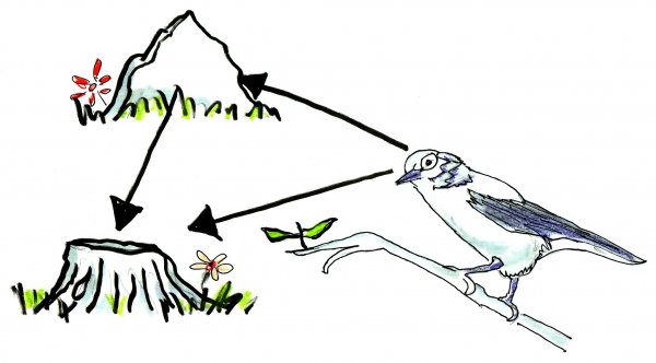 再接着,它们会进行测量。Tomback说:“它们藏种子的地方距离物体1、物体2和物体3有着特定距离。它们利用这些参考物构成了一个三角形,它们的脑海里也会留下相关参考物的图片。”