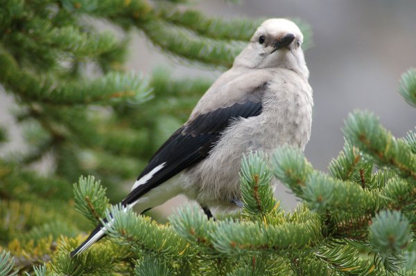 盛夏,白皮松开始在球果中生产种子。星鸦在树丛间蹦来蹦去,视察之后它们会将它们那锋利的喙刺入球果,将里面的种子一个个拉出来。它们的工作很快。一项研究曾估计过一只星鸦收获种子的速度为32颗/分钟。