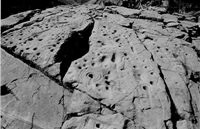 19世纪和20世纪把它重新挖出来后,也露出以前涂鸦的痕迹,那是1937年,一名叫作马克蓝(Ludovic Maclellan Mann)的考古学家刻意画的,可以看到他画的线条沿着装饰纹旁蚀刻进去了,他之所以在这块石头上涂鸦,是为了帮助测量史前艺术是否跟日蚀一类的天文现象有关。