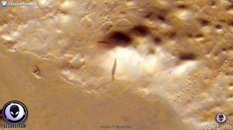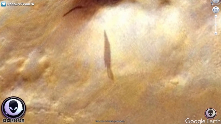 外星猎人频道 Secureteam 10收到一个投稿者的讯息,说他用Google地球在火星上发现一个巨大的神秘影子。