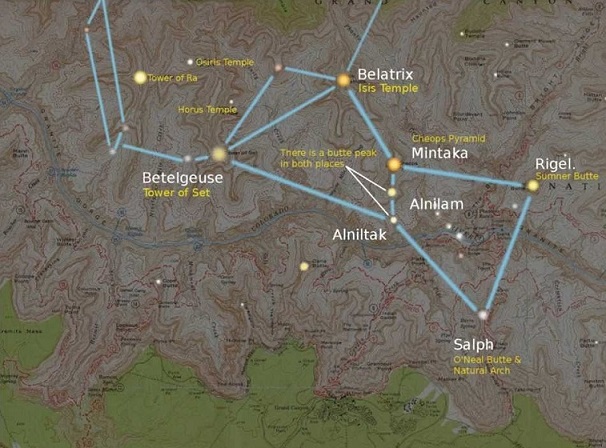 “…历史学家与语言学家Carl Hart,同时也是世界旅游指南的编辑,他在芝加哥的一个书店得到一张大峡谷徒步旅行的地图,在地图上,我们很惊讶的发现大峡谷的北部地区大部分都有埃及名称,例如,九十四里河(Ninety-Four Mile Creek)和三一河(Trinity Creek)的附近区域有像金字塔群的名字,像是荷鲁斯神殿(Horus Temple)、欧西里斯神殿(Osiris Temple)and伊西斯(Temple)的名称,在闹鬼峡谷附近区域的名称则为古夫金字塔(Cheops Pyramid)、佛修道院(Buddha Cloister)、佛庙(Buddha Temple)、马努寺(Manu Temple)和湿婆庙(Shiva Temple)…等。”