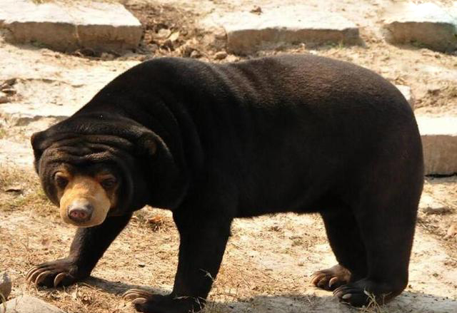 马来熊可以说是熊科动物中的郭敬明,它们是真正的弱鸡,也是世界上唯一一种对人造不成任何威胁的熊科动物。最大的马来熊体长仅为1.5米,体重为140斤左右(其实很少有能长这么大的,马来熊通常1米左右的居多,体重则以六七十斤左右的居多)。