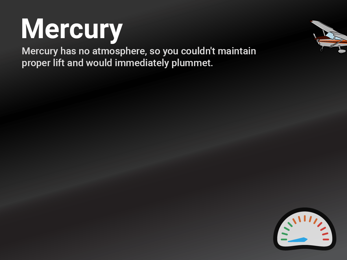 水星没有大气,无法维持适当的浮力,你将立即垂直坠机。