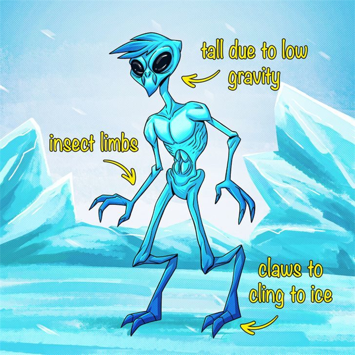 你的模样:可以参考地球上有御寒能力的昆虫或鱼,另外低重力也造成肌肉和骨骼萎缩,椎骨间的缝隙加大,使我们长更高。你的姿态也会不一样,因为绝大多数时间你的脊柱都是没有作用的。冥王星上的你,可能会长得又高又瘦,有点像蜘蛛,四肢有很多节,脊椎是弯曲的。