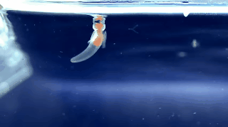 虽然它们长得这么可爱,不过捕食的时候其实非常凶猛。身长一般只有2厘米的它们,会忽然加速冲到猎物身边,然后“打开头部”,翻出6条触手般的口锥,把猎物扯进体内消化。