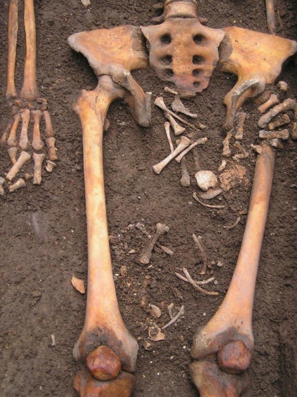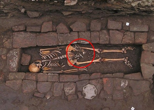 2010年意大利出土了一具女子遗骸,这个骸骨是中世纪的,她的年龄在25到35岁间。她的罕见之处是因为她在墓穴中“生产”。