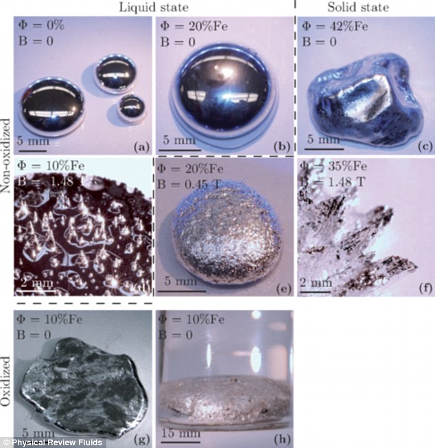 为了要模仿所发生的现象,研究人员把铟(indium)和镓(gallium)结合成一种名为铟镓共晶合金(eGaIn)的合金,带有各种磁性和非磁性粒子,包括铁和锌(zinc)。