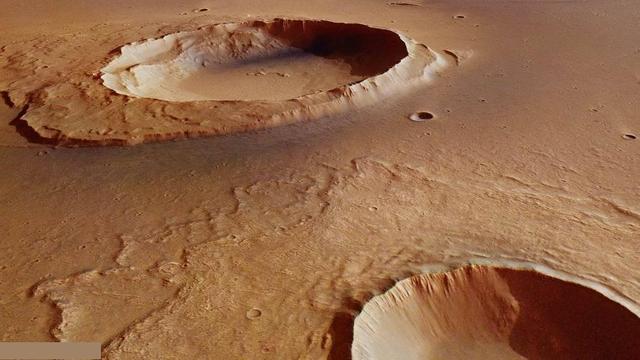 美国宇航局对火星表面的最新勘测结果显示,三十多亿年前的火星曾经有大河存在,在这张照片上,是一个被命名为伍斯特陨坑的和其邻近陨坑,这些陨坑位于卡塞峡谷入口处,科学家对于其详细结构进行评估后认为,大约在36-34亿年前,这些陨坑曾经被“超级洪流”浸没,洪水严重侵蚀了陨坑的外部边缘。才使其变成了今天这样的样子。