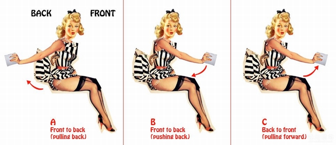 所以你可以用A或B (前往后),只要动作不要太快就好,但绝对不要用C (后往前)!